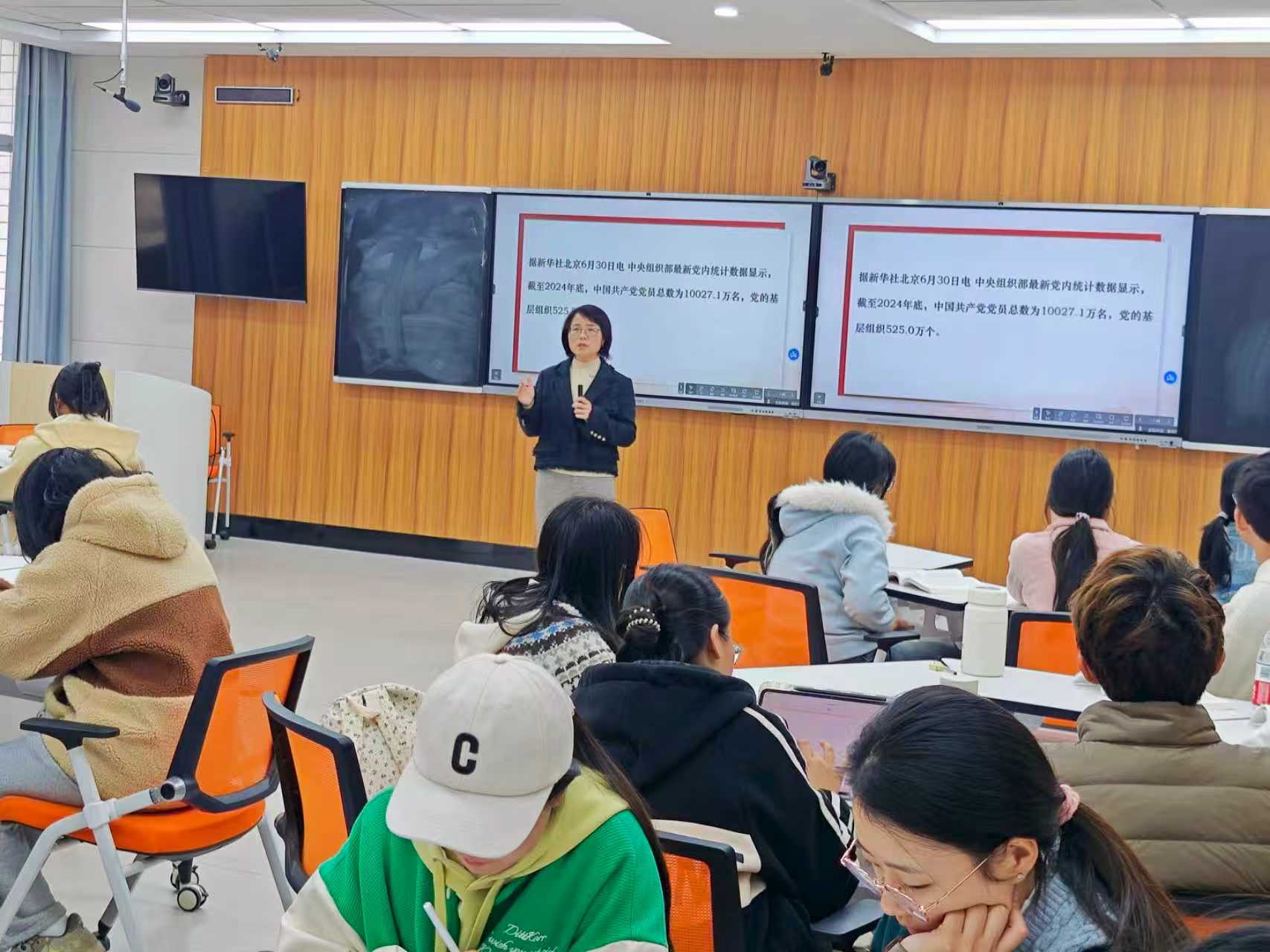 12月2日下午,2025-2026学年第一学期《习近平新时代中国特色社会主义思想概论》课程迎来最后一讲。马克思主义学院赵美岚教授讲授“坚定不移全面从严治党”专题。
