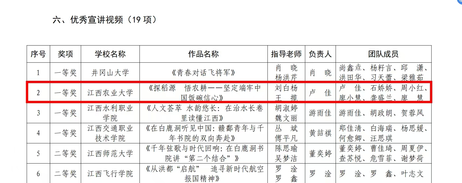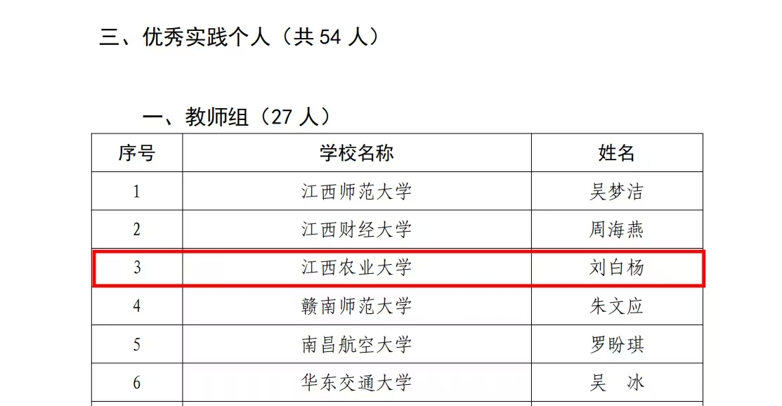 近日,省教育厅公布了“牢记嘱托强国有我 行走赣鄱感恩奋进”江西省高校学子暑期大思政实践活动优秀成果获奖名单。学院刘白杨老师荣获教师组“优秀实践个人”,刘白杨、王揽两位老师指导研究生拍摄的视频《探稻源 悟农耕——坚定端牢中国饭碗信心》获优秀宣讲视频一等奖。
