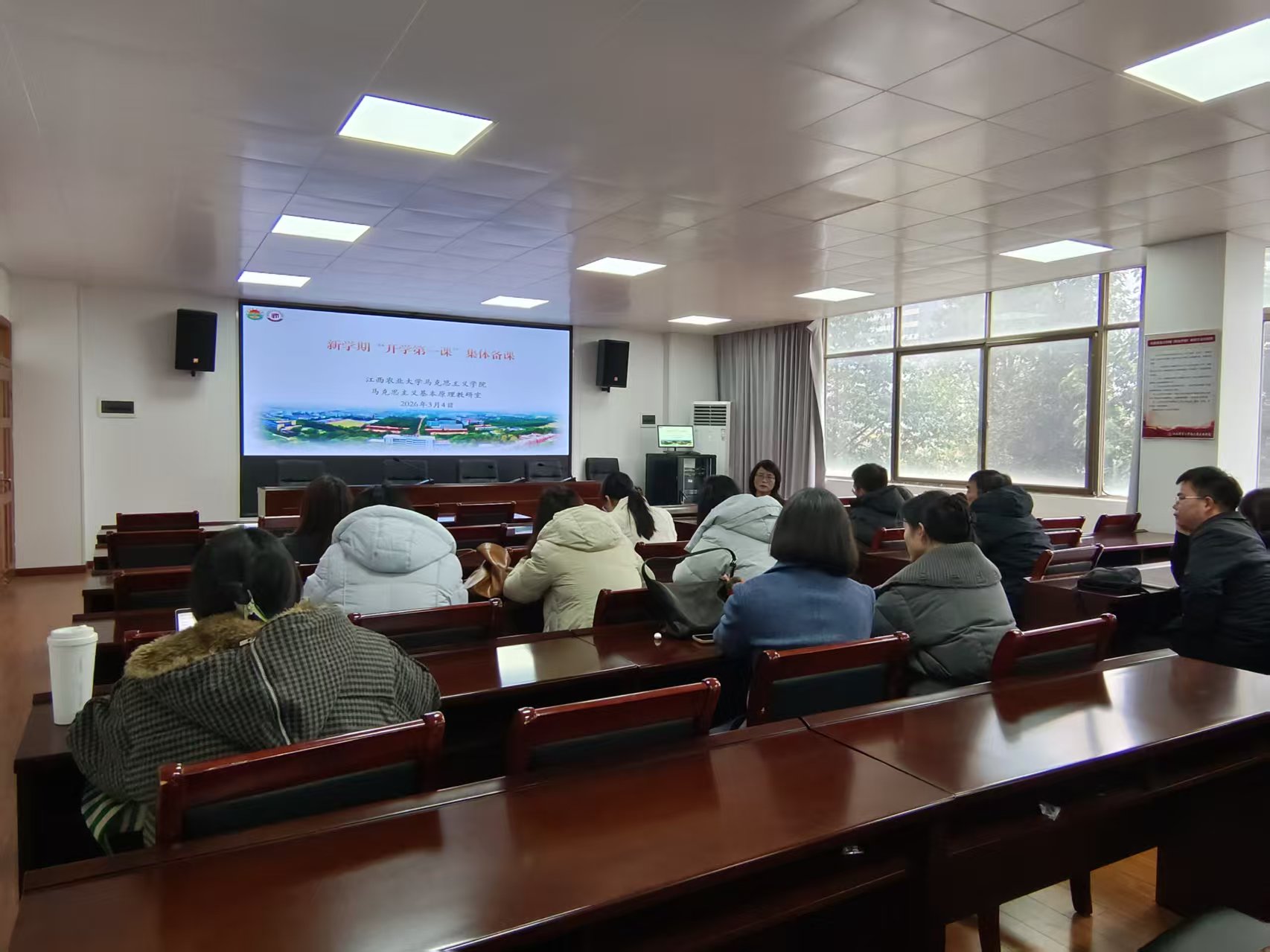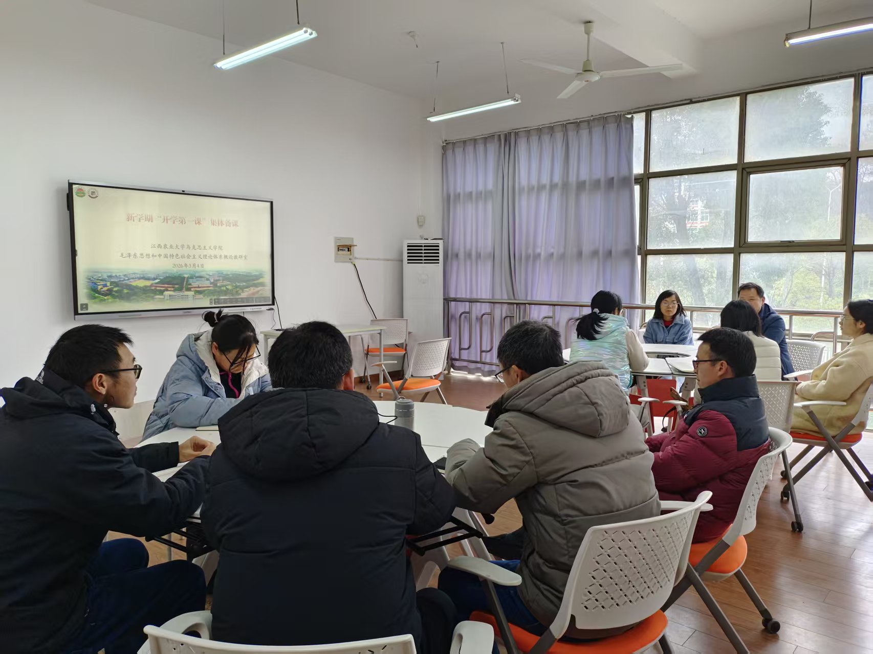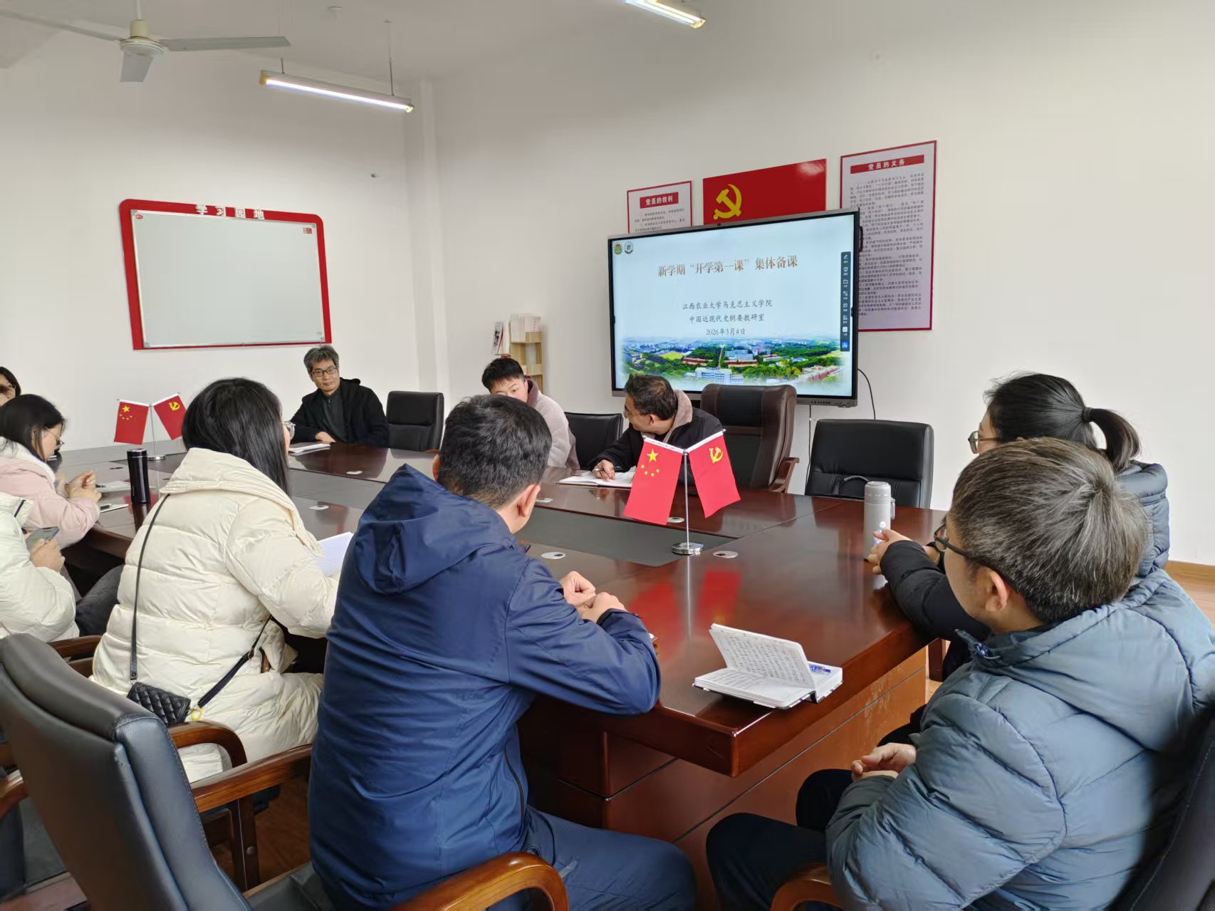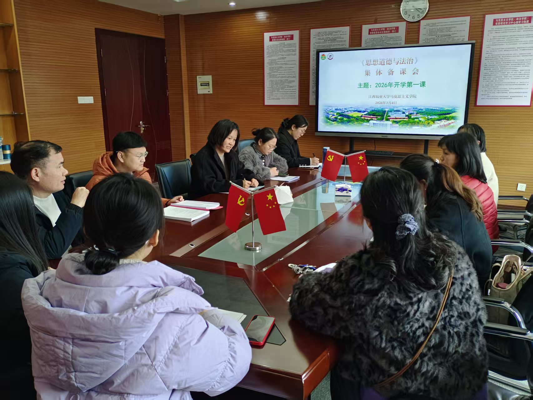 为深入贯彻落实立德树人根本任务,筑牢思想政治理论课主渠道主阵地,3月4日下午,学院组织各教研室开展“开学第一课”集体备课。学院领导班子成员、教学督导组成员及各教研室全体教师参加备课活动。